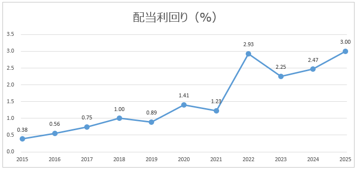 - 配当利回りは低めながら、上昇傾向