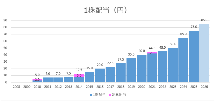 👉 配当は安定、かつ累進配当 ◎