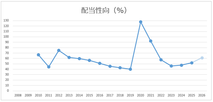 - 配当性向は良い水準(コロナ禍を除く)