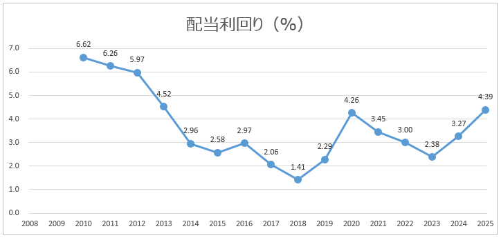 - 配当利回りは、待てば4%程度を狙えそう