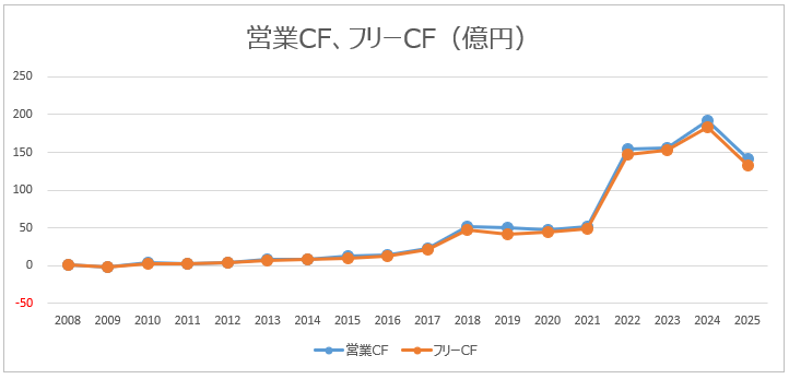 - 営業キャッシュフロー、フリーキャッシュフローともに、おおむねプラスを維持