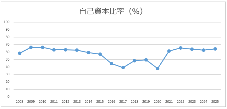 - 自己資本比率が高く、借金少ない
