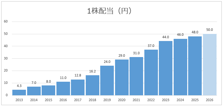 - 毎年きちんと配当を出しており、12期連続増配中