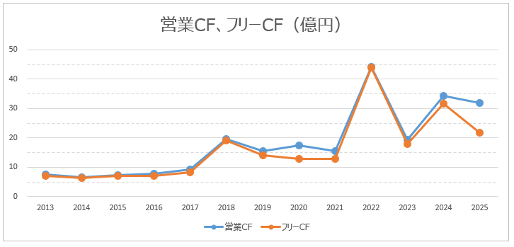- 営業キャッシュフロー、フリーキャッシュフローともに、プラスを維持