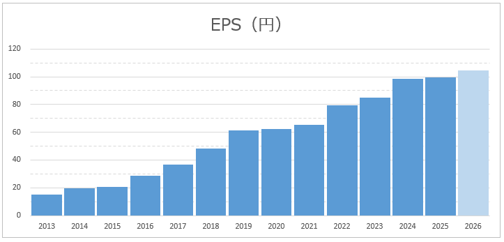 - 1株当たり利益(EPS)は上昇傾向
