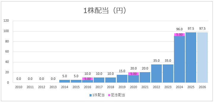 今後の1株配当は、次期経営計画とあわせて検討とのこと。