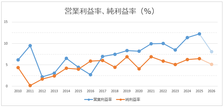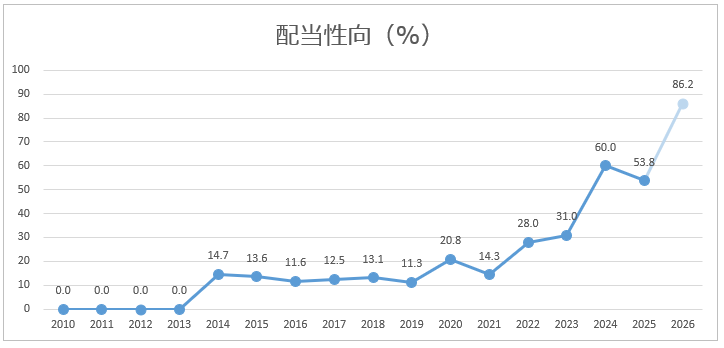 👉 2026年3月期は減益予想のため、配当性向が高くなる見込み