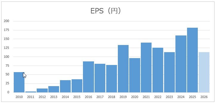 - 1株当たり利益(EPS)、利益率ともに上昇傾向