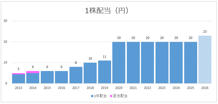 - 配当政策は「将来にわたり安定的な配当を実施。業績向上時には増配等により株主への利益還元も積極的に行う」