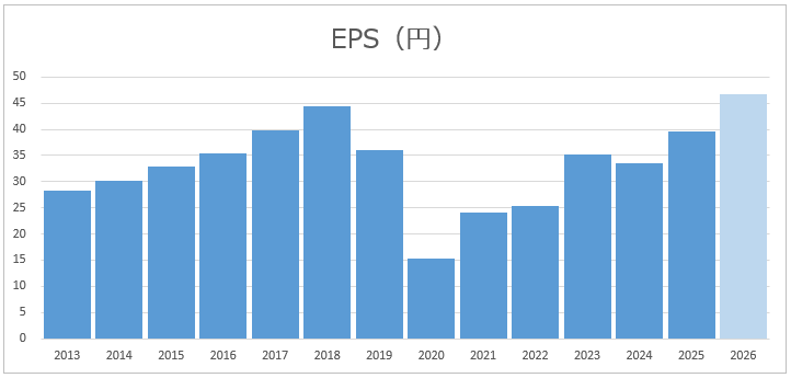 - 1株当たり利益(EPS)は、コロナ禍前の水準に戻している