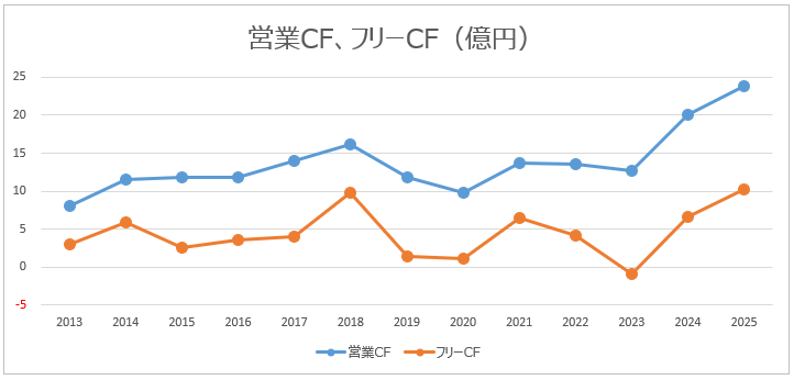 - 営業キャッシュフロー、フリーキャッシュフローともに、概ねプラスを維持